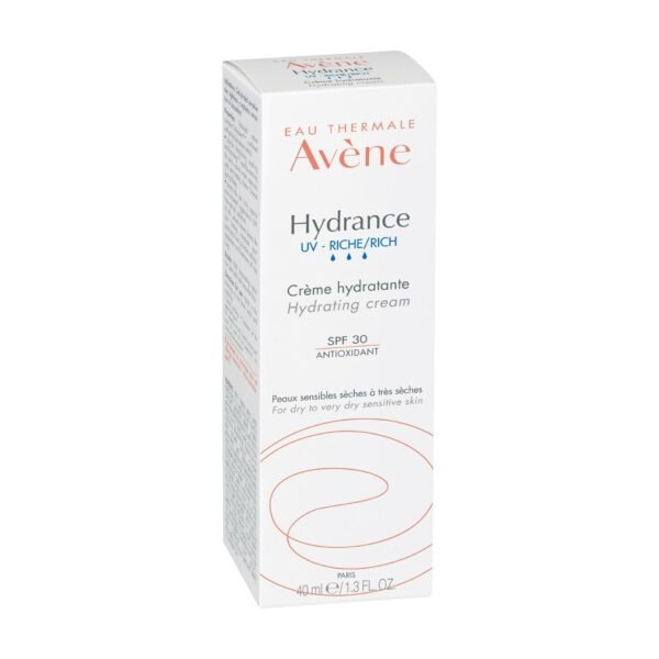 SaleHighlights: • PROTÈGE : Une haute protection solaire SPF 30 contre les UV et la pollution, grâce au système filtrant Sunsitive® Protection et au Pré-tocophéryl. • HYDRATE 24 h en continu. L’action du complexe hydratant d’actifs Cohederm™ breveté* d’Hydrance UV RICHE Crème hydratante assure une diffusion optimale de l’Eau thermale d’Avène et limite son évaporation. • ADOUCIT : Cette crème hydratante au subtil parfum frais apporte à chaque application une recharge d’Eau thermale d’Avène, pour une peau douce et lumineuse.Sku: 3282770208795