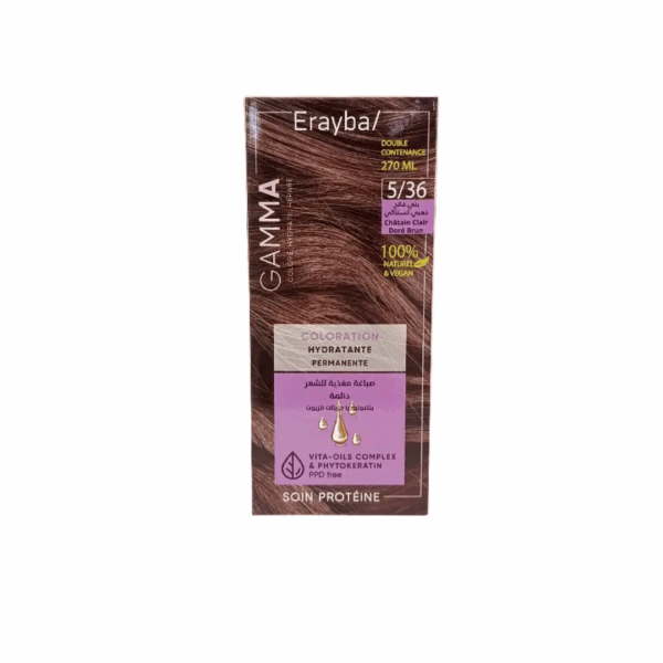 Résultat couleur : Un châtain clair intense aux reflets dorés et irisés, offrant une brillance naturelle et une profondeur de couleur. Soin capillaire : Grâce à sa formule enrichie en phytokératine, huile de macadamia et vitamine C, cette coloration hydrate en profondeur, renforce la fibre capillaire et laisse les cheveux doux et soyeux. Formulation saine : Sans ammoniaque, PPD ni silicones, elle minimise les risques d’irritation et est adaptée aux cuirs chevelus sensibles. Application facile : Sa texture gel-crème permet une application uniforme et précise. Contenu du kit : Crème colorante 100 ml Crème activatrice 150 ml Shampoing post-coloration 10 ml Masque soin 10 ml