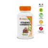 Le complexe Vitamines et Minéraux fournit un apport optimal en micronutriments. 3 gélules apportent 11 vitamines (A, B1, B2, B3, B5, B6, B8, B9, B12, C, E) et 6 minéraux (calcium, magnésium, zinc, manganèse, cuivre, sélénium). Les micronutriments – ainsi nommés parce que l’organisme n’en a besoin que de quantités infimes – jouent un rôle essentiel dans la production d’enzymes, d’hormones et autres substances aidant à réguler la croissance, l’activité, le développement et le fonctionnement des systèmes immunitaire et reproducteur. Un apport adéquat est particulièrement important pendant la petite enfance et à d’autres périodes de croissance rapide, ainsi que pendant la grossesse et l’allaitement. Suite à des évaluations scientifiques, l’EFSA (European Food Safety Authority) a confirmé officiellement que certaines fonctions de notre organisme pouvaient être améliorées par un apport en minéraux et vitamines. Voici un tableau synthétisant les récents avis de l’EFSA. Ingrédients Lithothamne (L. calcareum) algue titré à 32% de calcium et 2% de magnésium, tunique : gélifiant pullulan, oxyde de magnésium marin, sels calciques de l’acide citrique, vitamine C, levure (S. reviviscence) au sélénium, citrate de zinc, vitamine E origine naturelle, bambou (B. arundinacea) résine, extrait d’algue Dunaliella salina titré à 10% de bêta-carotène, acide folique (vit. B9), niacine (vit. B3), biotine (vit. B8), citrate de manganèse, antiagglomérant : sels de magnésisum d’acides gras, acide pantothénique (vit. B5), citrate de cuivre, vitamine B6, riboflavine (vit. B2), Thiamine (vit. B1), vit. B12.