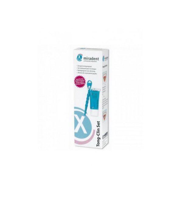 En cas de mauvaise haleine (nettoyage de langue) – très efficace et indoloré Une forte odeur buccale provient souvent de dépôts de bactéries sur la langue, langue blanche. Ces dépôts perturbent l’équilibre et donnent lieu à une augmentation de la plaque dentaire sur les dents. Le Miradent Tong-Clin Gel vous offre la solution idéale pour l’enlèvement efficace et indolore des dépôts sur la langue et est facile à utiliser avec le Tong-Clin Deluxe. L’utilisation d’une brosse à dents n’est pas recommandée pour diverses raisons (hygiène, soies trop longues, haut-le-cœur). Le nettoyage de la langue réinventée Une gratte langue traditionnelle “racle” la plaque de votre langue ce qui peut créer des blessures, très souvent combiné avec le haut-le-cœur. Pas du tout avec le Tong-Clin Set de Miradent ! Le Tong-Clin Gel décolle la plaque de la langue et le Brosse à langue, le Tong-Clin Deluxe, a une forme ergonomique et aide ainsi à éviter le haut-le-cœur. Avantages: 1. Le gel agit en profondeur • Sauge – désinfection • Camomille – anti-inflammation • Calendula – adoucissement • Chlorure de zinc – fraîcheur 2. Brosse de langue / Gratte langue • Large face de brossage • Brosse arrondie • Poignée ergonomique