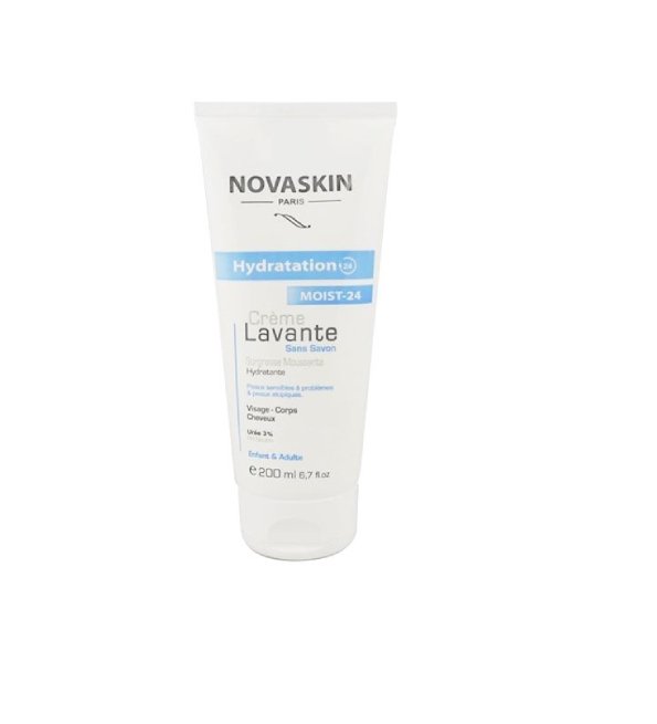 Crème nettoyante lavante sans savon (visage, corps et cheveux ) des peaux sensibles à problèmes et peaux atopiques . Grace a l’association de l’actif Moist 24 (5%) et l’Urée (3%), cette crème nettoie la peau en douceur tout en restaurant son film hydrolipidique. Base lavante douce, sans décaper ni agresser la peau. Conseils d’utilisation: Soin quotidien adapté aux peaux irritées ou réactives, convient aussi bien à la peau sensible du bébé , de l’enfant et l’adulte. Produit hypoallergénique, non comédogène et sans savon . PH neutre.