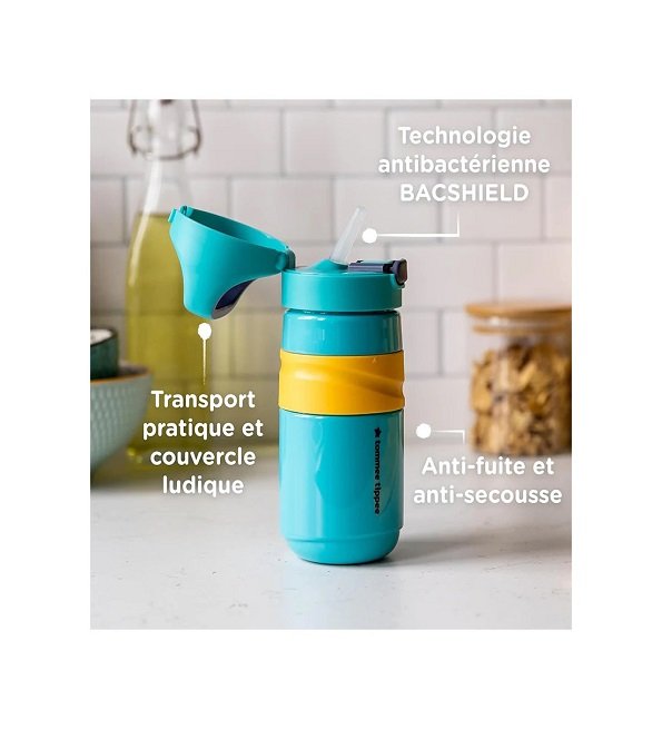 Tommee Tippee Gourde Anti-Fuite avec Paille 500ml – Orange Gourde d’entraînement à boire pour tout-petits de 18 mois et plus, étanche aux fuites et aux secousses, bec verseur antibactérien hygiénique, résistant aux morsures. Résistant aux fuites et aux secousses : Notre technologie anti-fuite unique INTELLIVALVE garantit que cette tasse d’entraînement est totalement étanche, même lorsque la tasse est retournée ou secouée. Bec hygiénique : Fabriqué avec la technologie antibactérienne BACSHIELD qui réduit les bactéries jusqu’à 99,9 % et empêche la croissance de bactéries indésirables qui provoquent la dégradation, la décoloration, les taches et les odeurs. Résistante aux morsures : la paille durable et douce pour les petites bouches mais suffisamment résistante pour résister aux petites dents. Ludique : les tout-petits adoreront boire dans l’eau claire et lumineuse. Gobelets colorés pour rester hydraté tout au long de la journée. Facile à nettoyer et sans BPA : nos gobelets sont faciles à nettoyer, passent au stérilisateur et au lave-vaisselle. Ils sont également sans BPA, BPS, PVC, phtalate et nitrosamine. Gourde est parfaitement dimensionnée pour les petites mains et peut contenir 500ml de liquide froid. Avec un couvercle confortable à transporter et amusant à retourner, rester hydraté n’a jamais été aussi amusant. Notre valve unique scelle et régule le débit de liquide pour arrêter les fuites et garantir une consommation facile. Adaptée aux tout-petits âgés de 18 mois et plus, la tasse est dotée d’une ouverture mécanique à bouton-poussoir facile à utiliser d’une seule main. Il agit en empêchant la croissance de microbes pouvant provoquer une dégradation, une décoloration, des taches ou une odeur du produit.