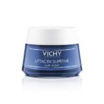 Caractéristiques : Liftactiv de Vichy répare la peau en profondeur en lui offrant des actifs anti-âge de qualité. De plus, elle possède une action hydratante et nourrit de cette manière les peaux les plus sèches. Ce soin convient à toutes les peaux présentant des rides profondes et une perte importante en fermeté. Délicate et onctueuse, la crème Liftactiv Vichy fond sur la peau. Très confortable, elle l’hydrate et ne laisse aucun fini collant et gras. Apaisante et régénérante, elle convient très bien aux peaux sèches et sensibles. Sécurité : – Hypoallergénique. – Sans Parabène. – Testé sous contrôles dermatologique. – Testé sur peaux sensibles. Ingrédients & Principes Actifs Clés : – Rhamnose (5%), un actif fermeté et anti-âge d’origine végétale. Celui-ci stimule de cette manière directement le derme source, reconnu pour sa faculté à se régénérer rapidement lorsqu’il est actif. Résultat : la peau, plus lumineuse au réveil, est comme liftée, lisse et ferme. Conseils d’Utilisation : Le soir, après avoir nettoyé votre peau au préalable, appliquez la crème de nuit Liftactiv de Vichy sur le visage, le cou et le décolleté. Efficacité : Efficacité anti-rides et fermeté avancée pour un effet Lifting durable. Peau intégralement transformée dès 4 jours* : visiblement plus lisse, plus retendue, plus lumineuse. *Test consommateur sur 49 femmes. Composition : Les listes d’ingrédients entrant dans la composition des produits de notre marque sont régulièrement mises à jour. Avant d’utiliser un produit de notre marque, vous êtes invités à lire la liste d’ingrédients figurant sur son emballage afin de vous assurer que les ingrédients sont adaptés à votre utilisation personnelle. AQUA / WATER – GLYCERIN – RHAMNOSE – PRUNUS ARMENIACA KERNEL OIL / APRICOT KERNEL OIL – CAPRYLIC/CAPRIC TRIGLYCERIDE – PENTAERYTHRITYL TETRAETHYLHEXANOATE – CETYL ALCOHOL – ZEA MAYS STARCH / CORN STARCH – BUTYROSPERMUM PARKII BUTTER / SHEA BUTTER – PETROLATUM – GLYCERYL STEARATE – PENTYLENE GLYCOL – DIMETHICONE – PEG-40 STEARATE – CERA ALBA / BEESWAX – HYDROXYETHYLPIPERAZINE ETHANE SULFONIC ACID – STEARYL ALCOHOL – SORBITAN TRISTEARATE – DIMETHICONOL – TRIETHANOLAMINE – MYRISTYL ALCOHOL – PHENOXYETHANOL – ADENOSINE – MAGNESIUM ASCORBYL PHOSPHATE – ASCORBYL GLUCOSIDE – POLOXAMER 338 – CAPRYLYL GLYCOL – XANTHAN GUM – PENTAERYTHRITYL TETRA-DI-T-BUTYL HYDROXYHYDROCINNAMATE – PARFUM / FRAGRANCE.