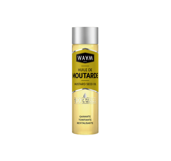Cheveux L’huile de Moutarde lutte efficacement contre la chute des cheveux et contre les pellicules, elle stimule la circulation sanguine tout en apportant brillance et hydratation. Parfaite pour des cheveux toujours plus longs et soyeux. Utilisations : En bain d’huile et massage du cuir chevelu pour lutter contre la chute des cheveux et stimuler la pousse. Indications : Cheveux fins, cassants. A éviter sur les cuirs chevelus irrités. Propriétés • Renforce les cheveux : accélère la pousse et ralentit la chute • Tonique capillaire et cutané : raffermit et tonifie les tissus et le cuir chevelu • Nourrit la fibre la capillaire • Effet légèrement chauffant : peau et cuir chevelu • Antipelliculaire • Conditionneur capillaire : gaine et nourrit la fibre capillaire Composition du produit INCI : Brassica alba seed oil Qualité du produit Les huiles végétales WAAM sont 100% pures et naturelles. Extraites par première pression à froid de plantes, les produits sont garantis être d’une excellente qualité aux propriétés préservées. Un soin particulier est apporté à la qualité des matières sélectionnées par WAAM. Tous les produits sont composés d’ingrédients d’origine naturelle et/ou issus de l’agriculture biologique. L’engagement WAAM inclut l’utilisation d’ingrédients sains et d’alternatives aux ingrédients controversés.